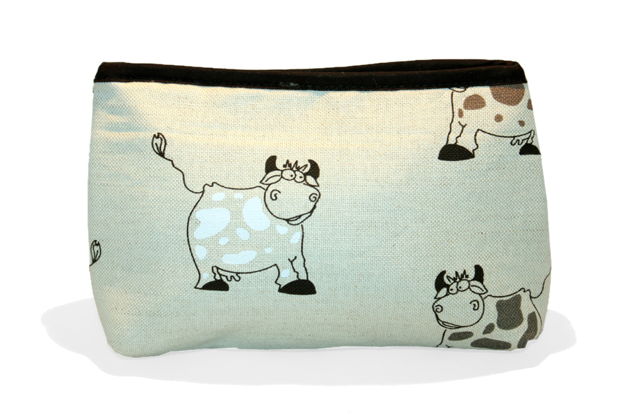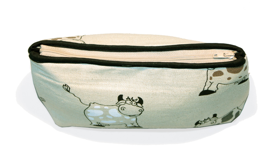 55 % pellava, 45 % puuvilla, pehmustettu polyestervanulla, sekä ohut tekstiilivuori.